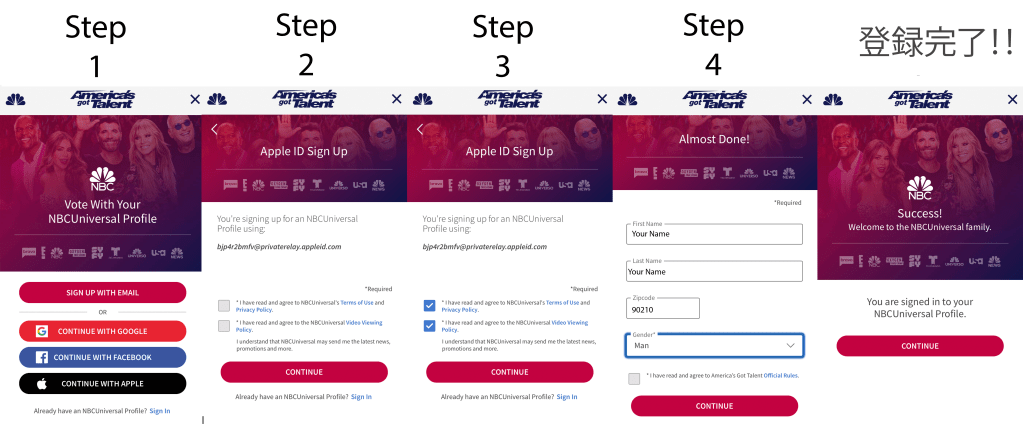 Step 1/ Step 2/ Step 3/ Step 4/ 登録完了!!