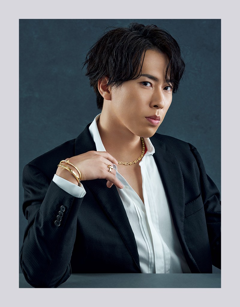In a quote from the GQ Japan website: Fukasawa is revealed as the first member of the group to have fallen in love with Tiffany’s. “I’ve been wearing it since I was in high school. The elegant design and colors are the most appealing, and I’m a collector who owns not only jewelry but also a suitcase that was a collaboration between Tiffany & Co. and Globe-Trotter,” he says. “That’s why when I received the offer to become an ambassador, I was already fist pumping. It’s like a dream come true.”
