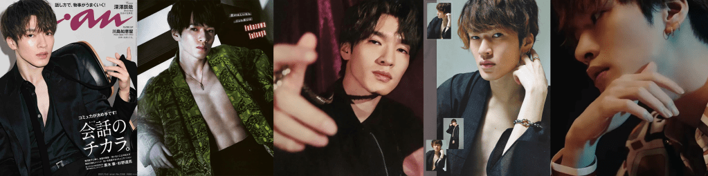Fukazawa, who goes by the nickname Fukka or Tatsu, was one of the original members of Snow Man along with Iwamoto, Watanabe, Miyadate, Sakuma, and Abe, back when the group was called Mis Snow Man. It also included Sanada Yuma and Nozawa Yuki (who were later moved to form the Johnny’s Jr. duo “noon boyz.”