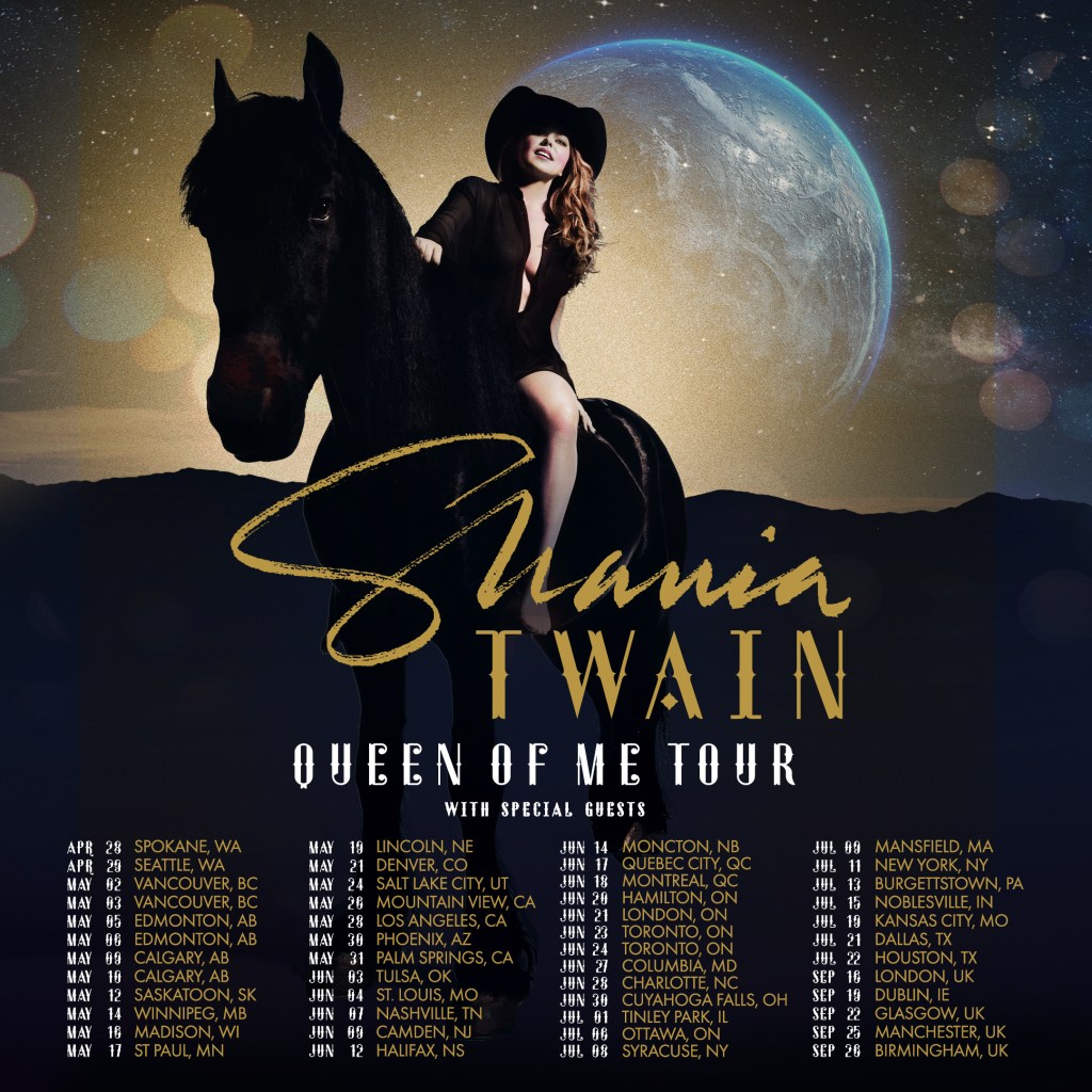 Shania kicks off the Queen of Me Tour in April. Dates below. Get tickets if you can, I’m sure it will be fabulous!