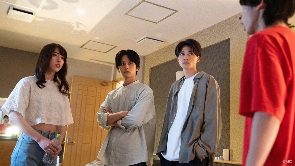 This episode brought a new face that turned our atypical trio into a very queer (in more ways than one) quartet. Idegami Baku joins the cast as the cross-dressing Kagami Meguru, the younger sibling of Yuma’s idol. She joins the family after they save her from being attacked by someone she is hitchhiking with. It’s only discovered that she’s actually a boy when Masumi accidentally walks in on her, standing at the urinal. Ritsu walks up to them moments later, and Kagami tells him the truth. The three of them decide not to tell Yuma.