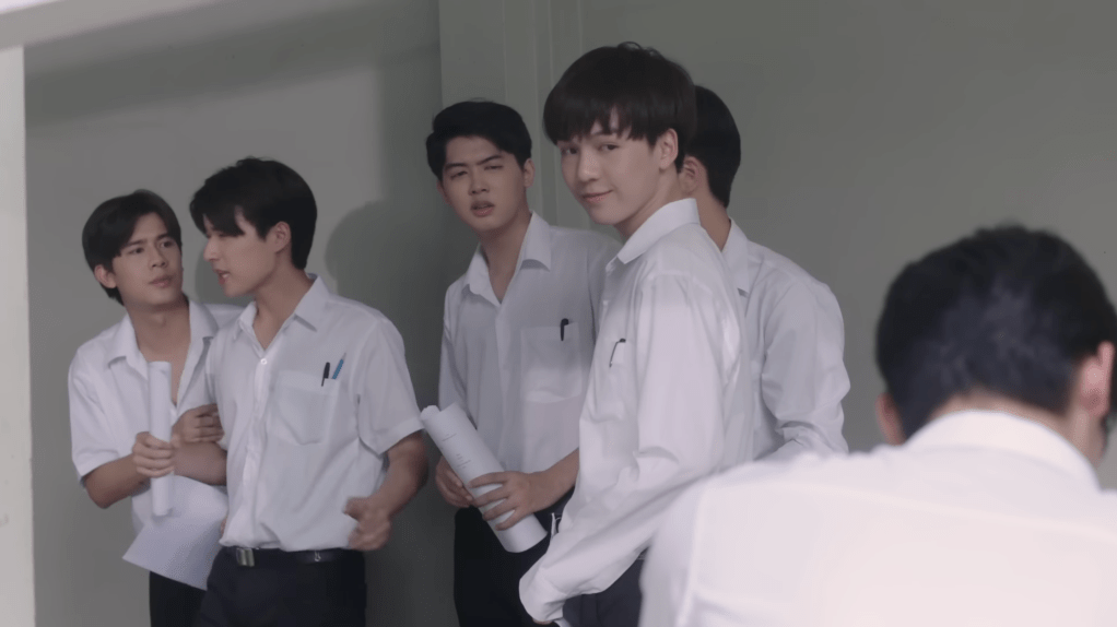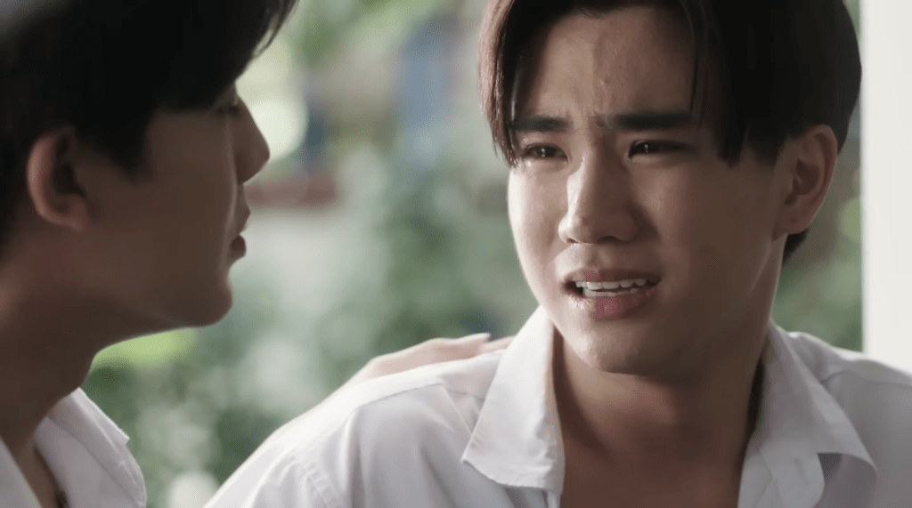 The past. Shortly after Korn and In commit suicide, In’s best friend, Somkrit (Tanapon Sukumpantanasan, Perth) is with their group of friends discussing a group project, one In helped with. The professor gave one of In’s assignments to another student to give to Somkrit. He immediately starts telling a story about how In made him try one of his burnt omelets, and how mad he got at him when Somkrit tells him how terrible it was. Maybe it’s because Perth is a great actor, or maybe it’s because I’m a sympathetic crier, but every time he cries, I cry.