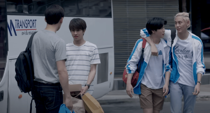 The present, Dean is in a bad mood. The overnight trip has him stressed, and when he’s stressed, he’s even more strict than normal. To the point where even Win (his best friend) doesn’t want to deal with him. So, they send Pharm, with whom Dean is instantly transformed into the personification of jello. On the bus, Win realizes that Dean is the only one who has a star-shaped Look Choup, while everyone else only received simple shapes. In thanks for the food, Team sneaks some candid pics of Dean while at the camp.