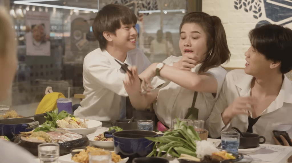 In the present, Dean, Pharm, Manaow, Team, Win, and Del all have breakfast together. Team and the group playfully and harmlessly tease Pharm about how he only makes special deserts for Dean. In a moment of pure tenderness, Dean reaches under the table to hold Pharm’s hand.