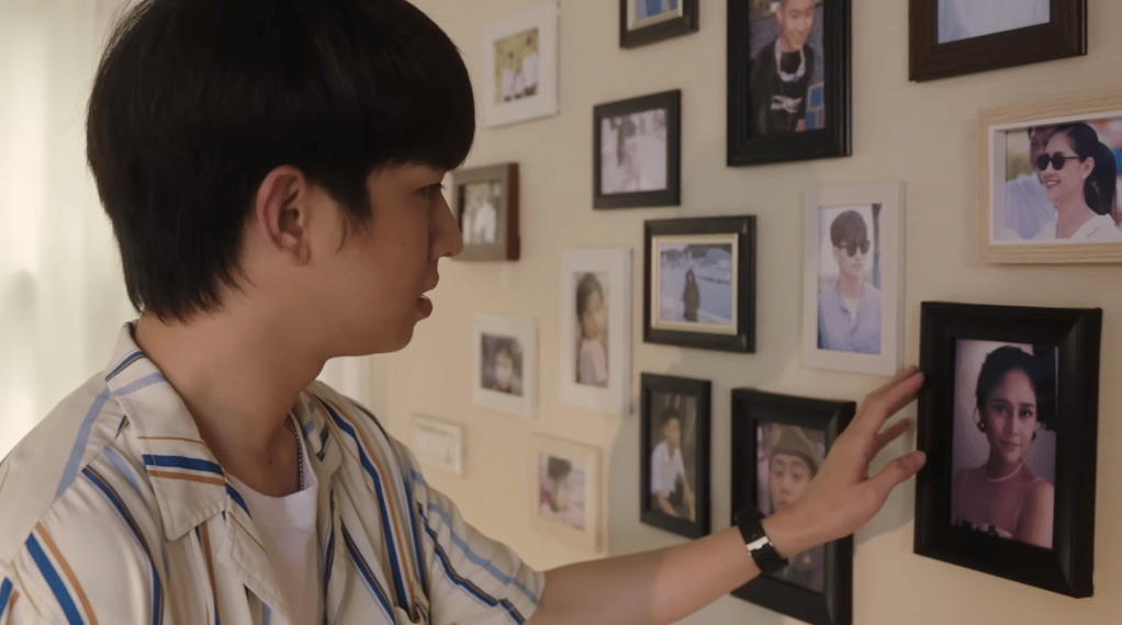 Present-day Pharm, along with Team and Manaow come to Del, Don, and Dean’s home so that Pharm can teach Del how to make a special Thai dessert for when her parents return. Don has stayed home because there is a football match he wants to see and Dean is asleep upstairs. Everyone agrees it’s best to have Pharm go and wake him up, but on his way to Dean’s room, he stumbles across a photograph of their mother, (Sinjai Plengpanich, Nok). Pharm has a flash of Alin, Intouch’s niece, causing tears to stream down his face. Wiping them away, he continues to Dean’s bedroom. After a playfully romantic gesture, Dean goes to shower while Pharm (disheveled) returns to help Del. Luckily he runs into Team who helps him straighten up.