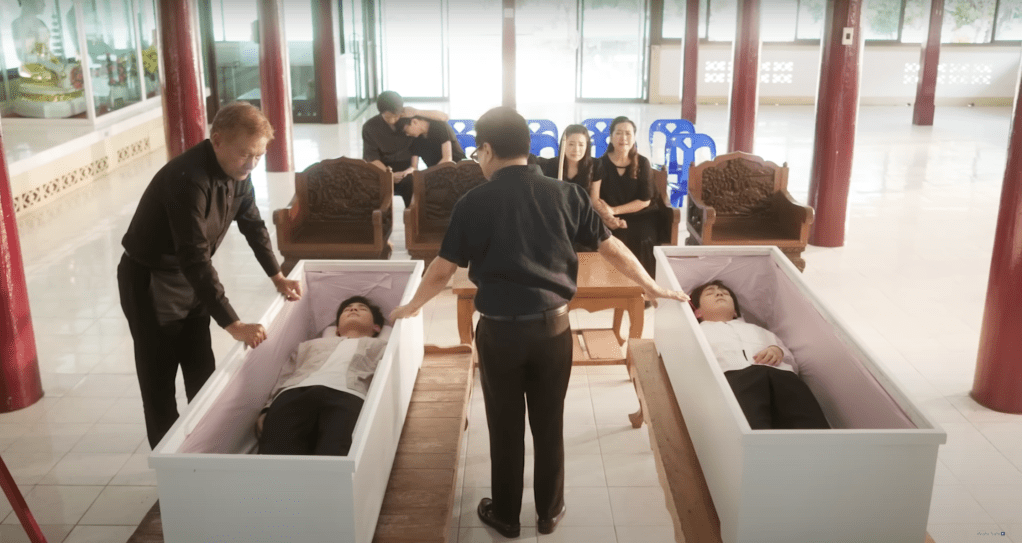 The episode (which is the longest in the series) opens with In and Korn’s funeral. Their fathers, clearly grief-stricken (In’s more than Korn’s) tie a red thread around each of their wrists, bringing their souls, ensuring that they will find one another again in the next life. Alin, as a child, doesn’t understand what’s happening, all she knows is that she misses her uncle and she wants him to come back soon.