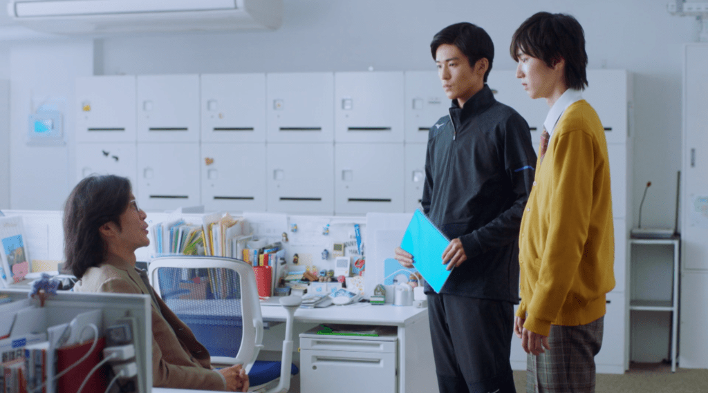 Ida comes to Aoki’s defense when their teacher, Mr. Taniguchi (Seiichi Tanabe) has assumptions about his sudden academic improvements. He reiterates how hard Aoki has worked, and that he’d never resort to something as low as cheating.