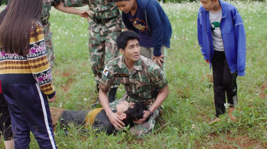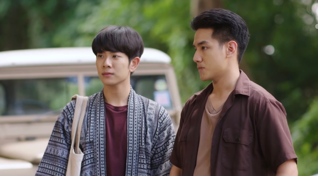After getting a call from Tul (Nawat Phumphothingam, White), who is coming to meet him, Tian decides not to return with Dr. Nam to the village – an act that irritates Phua. As they drink, Dr. Nam gives the chief some romantic advice, including speaking nicely to Tian, learning to pamper him, and taking him around to see more of the beautiful surroundings and (most importantly) make a move. He’s over 30, he can’t just stand on the sidelines forever.