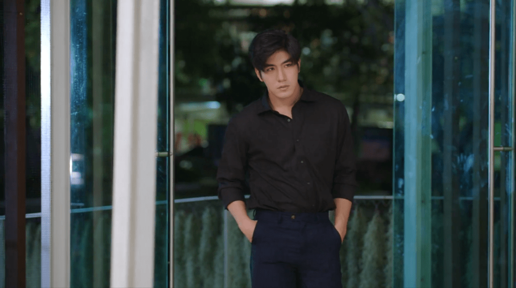 Luckily, Fah (Mek) is already waiting at the door and rushes to save him. Unsure of who this handsome stranger is, Kluen is even more confused.