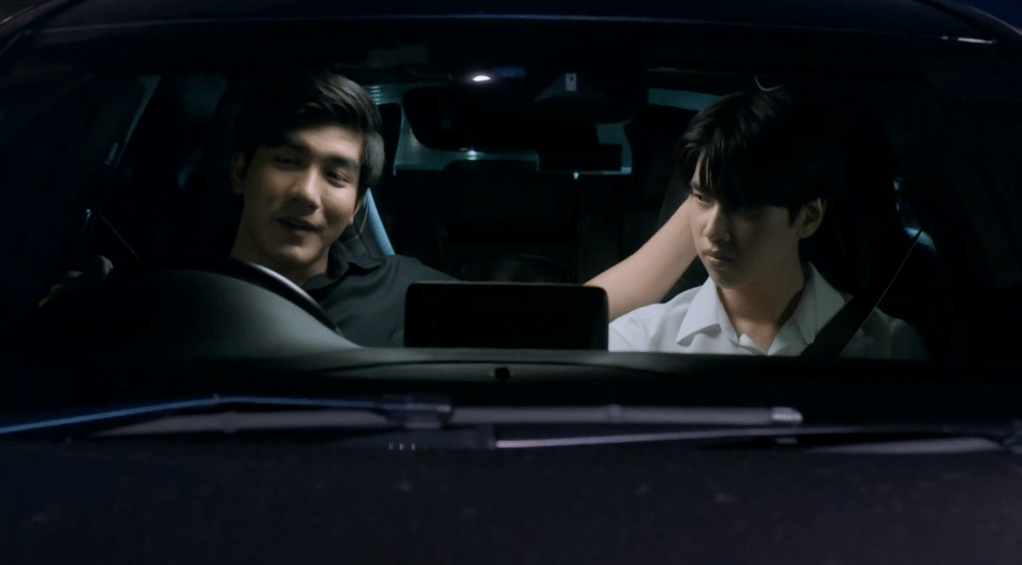 The next day, Sean was up to find Nuea and Kluen cuddling, but pretended his still hungover and didn’t see anything. Later, Kluen convinces him to go shopping for a frame for the photo he’s drawn. As they talk, Kluen finally discovers that Fah is Nuea’s big brother and not his boyfriend. He then convinces him to come home with him for his mother’s birthday dinner.