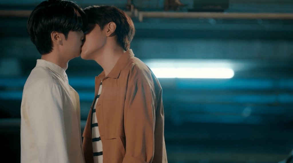 Sean is waiting. He confesses to Kluen that he knows everything. He needs to fix it. So he sets it up for the two to be the last at the bar. In the parking structure, Nuea finally asks him what he wants from him. Confessing that he’s never been good with love, and that he doesn’t know how or what to do, so instead, Kluen shows him by kissing him again.