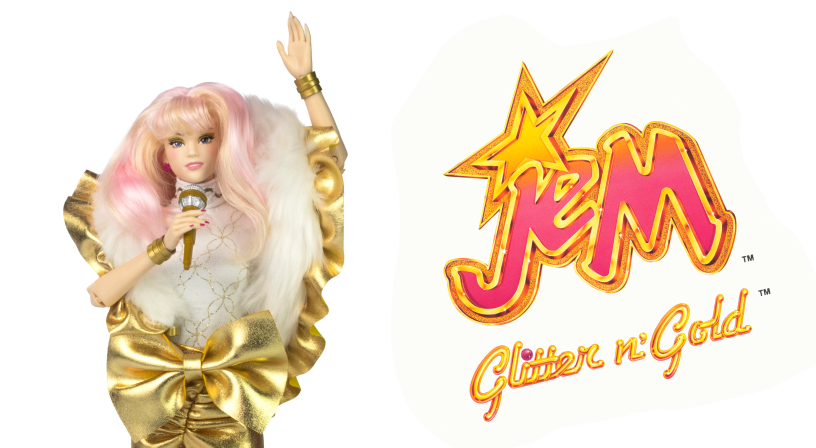 Now, nearly four decades later, toy company The Loyal Subjects is bringing back an all-new line of Jem and the Holograms 12” fashion dolls—including a stunning new Glitter ‘n Gold Jem. And, just like her original counterpart, she comes with music!